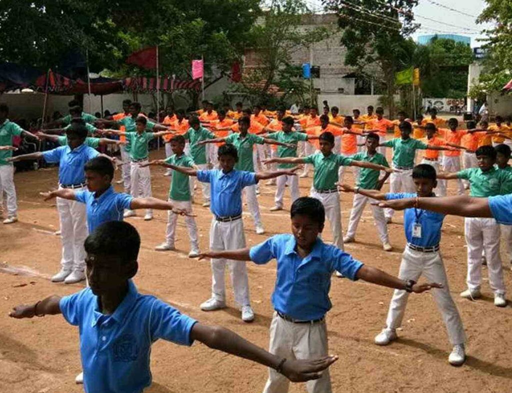 Wearing the prescribed Uniform, every student takes an active part in P.T. and play games regularly in the evening. No student is allowed to be inside the dormitories during the games hours